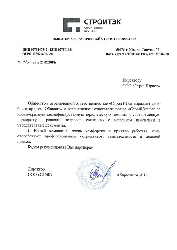 Отзывы клиентов "СтройЮрист" по регистрации фирм в Барнауле